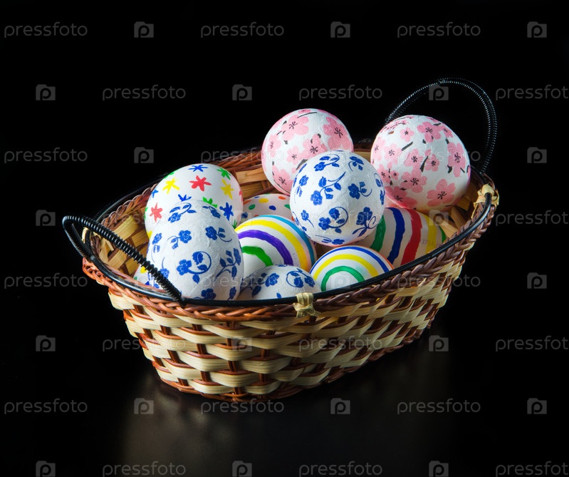 Пасхальные яйца в плетеной корзине