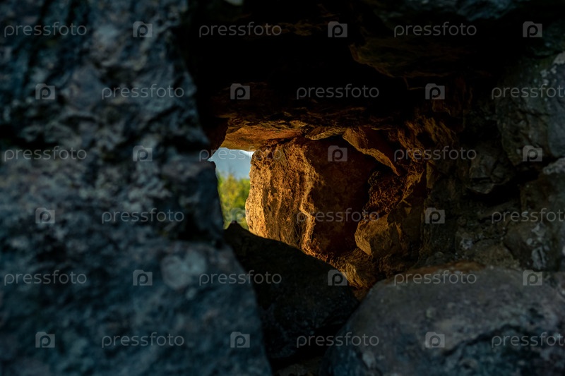 Дыра в каменной стене, через которую виден внешний мир