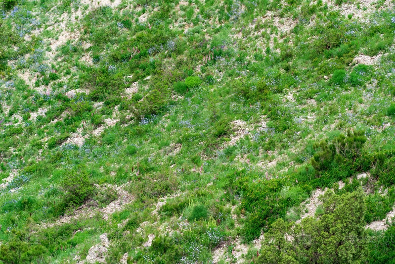 Частично размытый пейзаж с весенними лугами на склоне горы