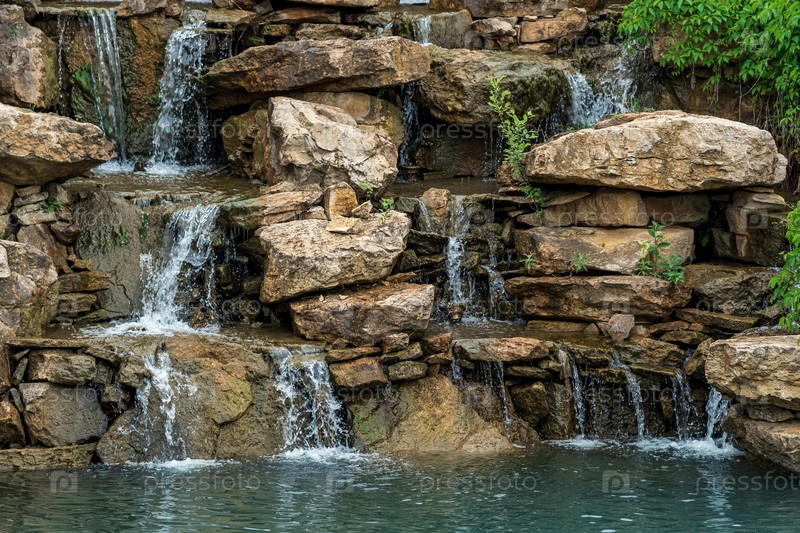 Ландшафтный дизайн, плотина с каскадом водопадов в виде природных скал