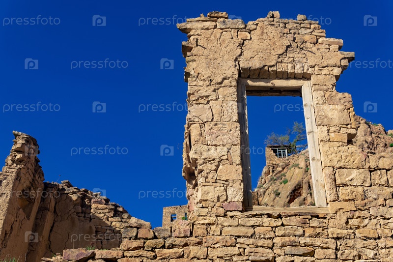 Руины стен обезлюдевшей деревни Гамсутль в лучах заката