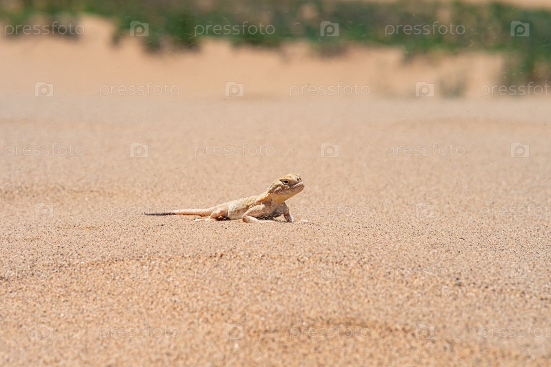 Пустынная ящерица секретный лягушоглавый агама (Phrynocephalus mystaceus) на бархане Сарыкум