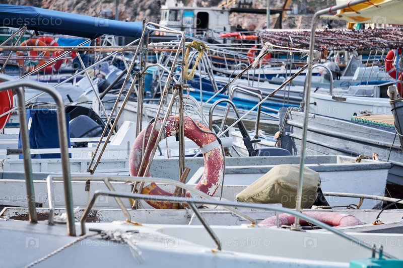 Фон - детали конструкций лодок, стоящих в гавани, сливаются друг с другом