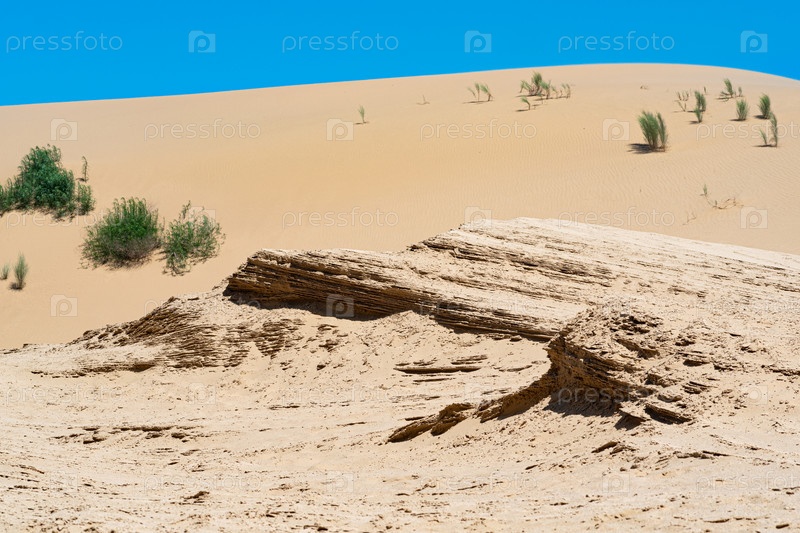 Пустынный ландшафт, слоистые отложения в песчаной пустыне