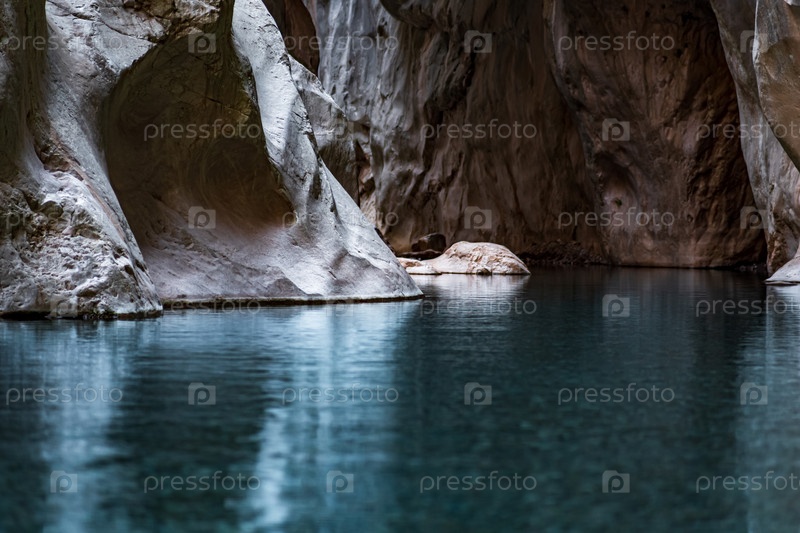 Узкий скалистый каньон горной реки со спокойной голубой водой в Гейнюке, Турция