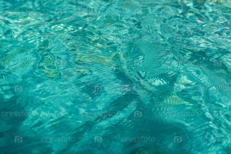 Абстрактный размытый фон - поверхность прозрачной чистой голубой воды с кругами из капель