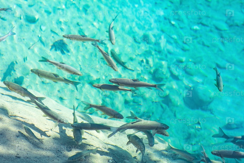 Стая рыб в чистой голубой воде горного ручья