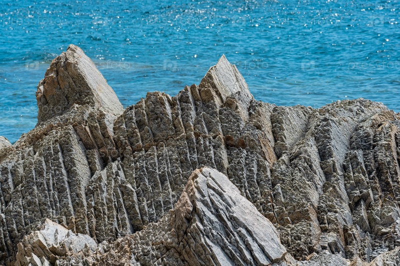 Красивые прибрежные скалы из слоистого вулканического базальта
