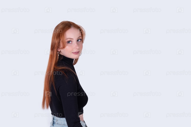 Молодая рыжая женщина изолирована на белом фоне