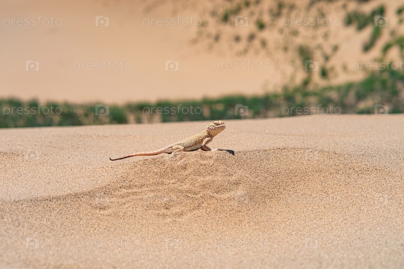 Пустынная ящерица Phrynocephalus mystaceus (тайная лягушоглавая агама) на бархане Сарыкум