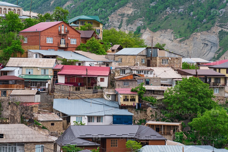 Горная деревня на склоне горы с домами друг над другом, Гуниб в Дагестане