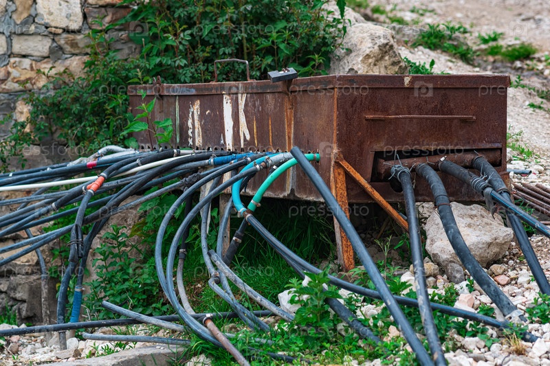 Импровизированный водопровод в горном поселке: вода из родника поступает в резервуар по трубе и раздается по домам с помощью шлангов