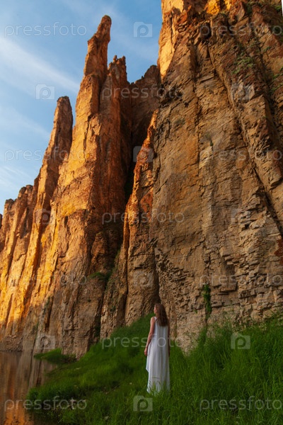 Девушка в белом у Поющих скал, река Синяя в Якутии