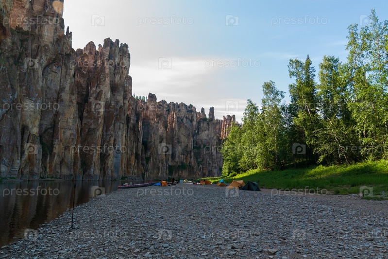 Туристическая стоянка у Поющих скал, река Синяя в Якутии