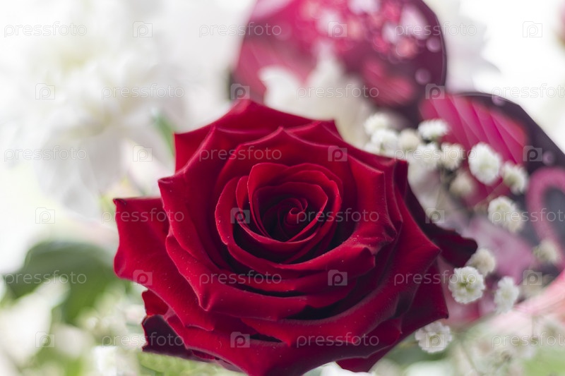 Закройте вверх по съемке букета валентинок с красивыми, яркими цветками и открыткой. Праздник