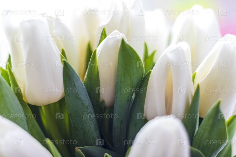 Крупным планом букет белых тюльпанов. Цветы