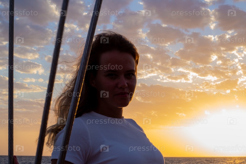 Девушка на яхте во время заката