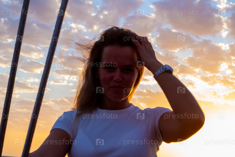 Девушка вечером на яхте
