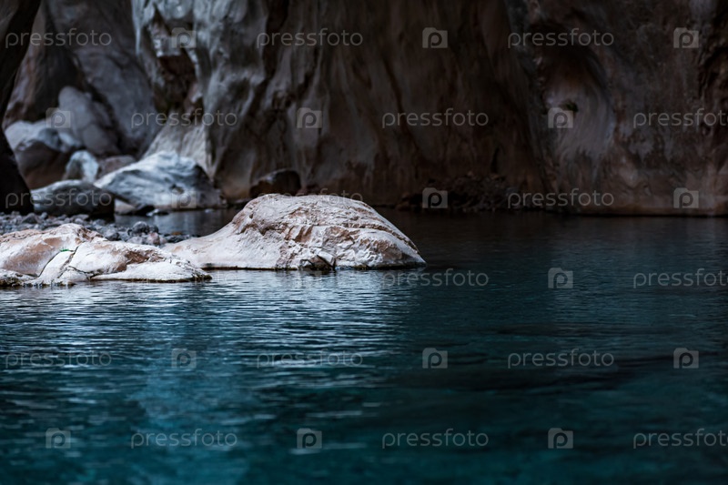 Чистая спокойная река со скалистыми берегами на дне глубокого каньона