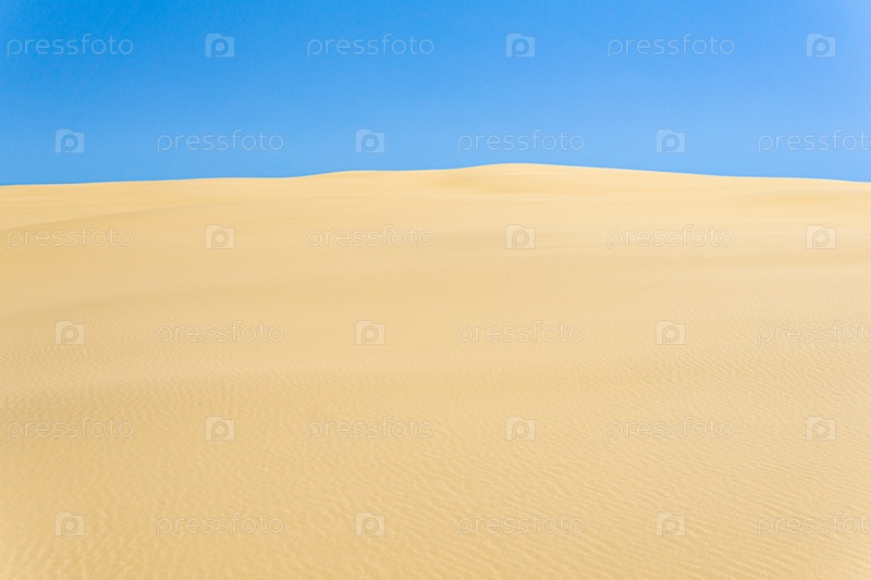 Пустынный пейзаж, песчаные дюны под голубым небом
