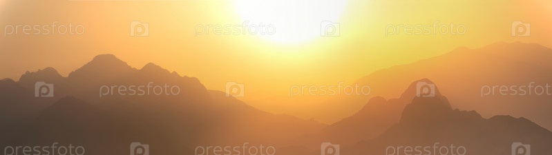 Оранжевая панорама - туманные горы на закате