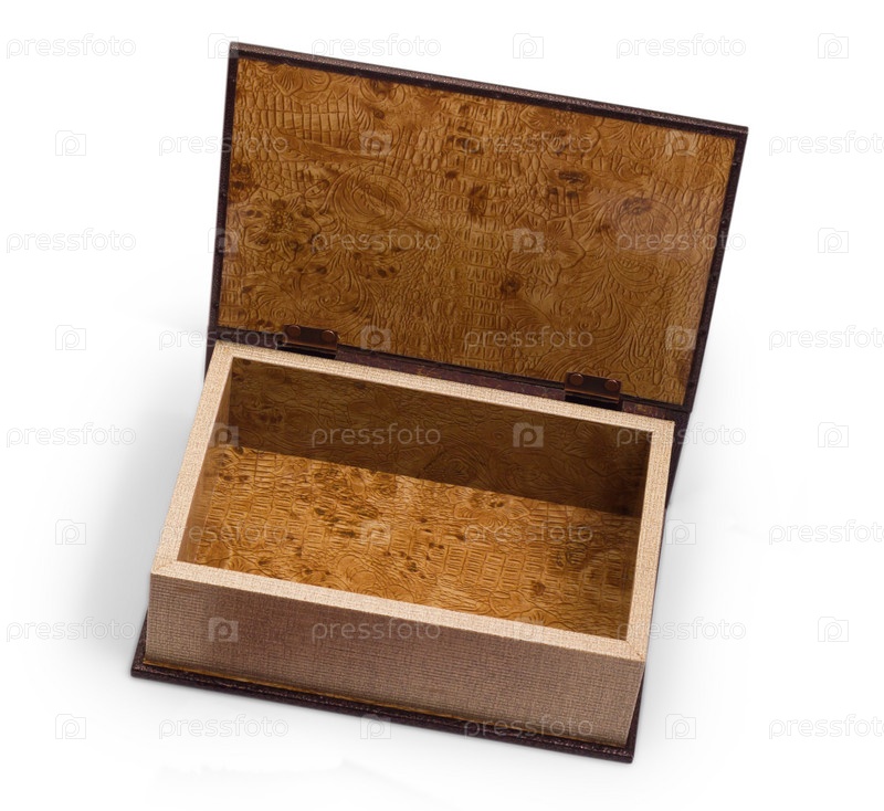Старинная деревянная коричневая шкатулка, изолированная на белом фоне