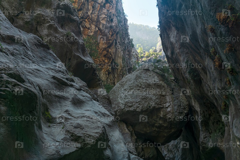 Огромные каменные подвески застряли между двумя скалистыми стенами каньона Гейнюк в Турции