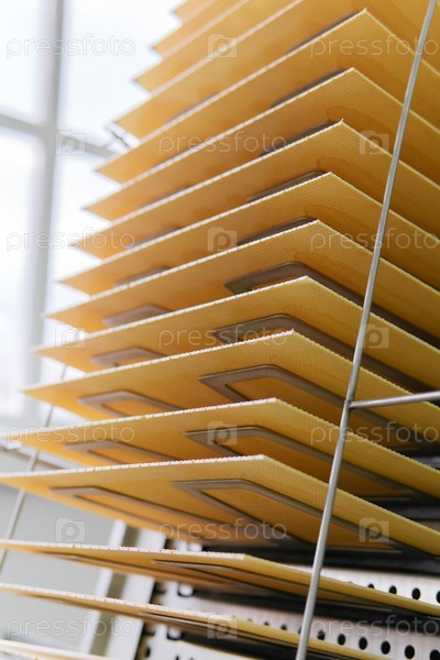 Свежеиспеченные вафельные листы движутся по конвейеру кондитерской фабрики