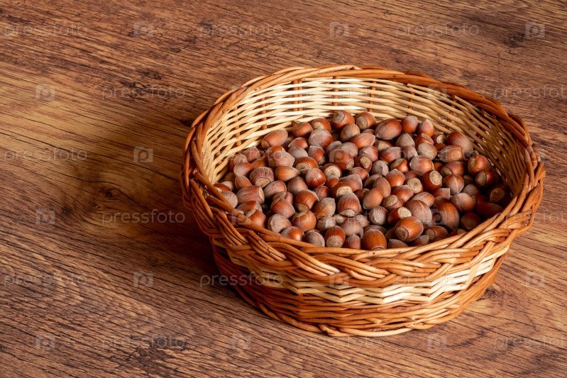 Корзина с фундуком стоит на полу в комнате крупным планом