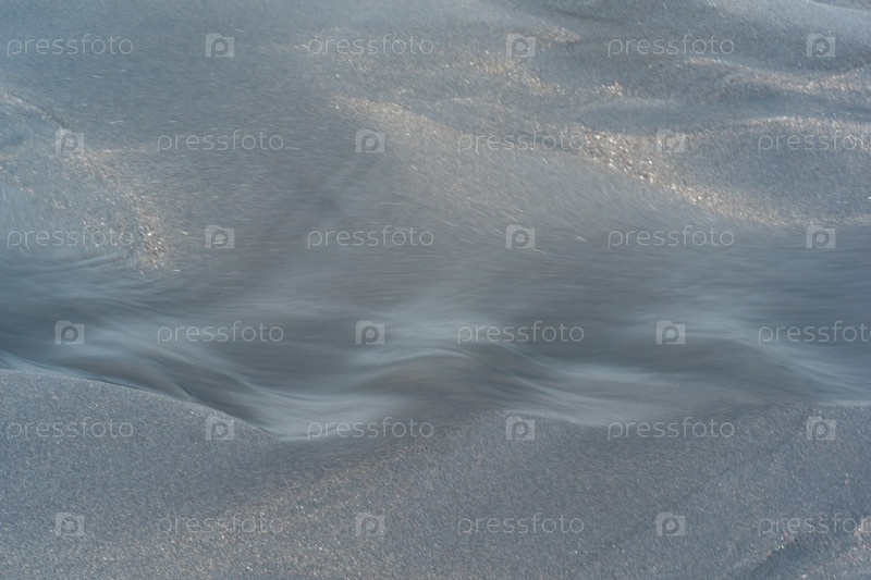Размытый природный фон, вода течет вдоль пляжа из черного вулканического песка
