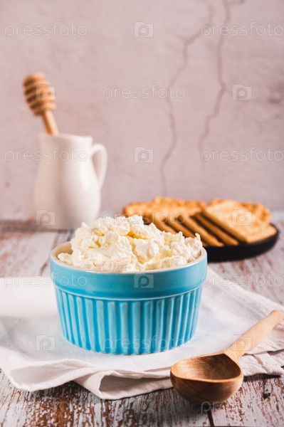 Традиционный сыр маскарпоне в миске на столе, вертикальный вид