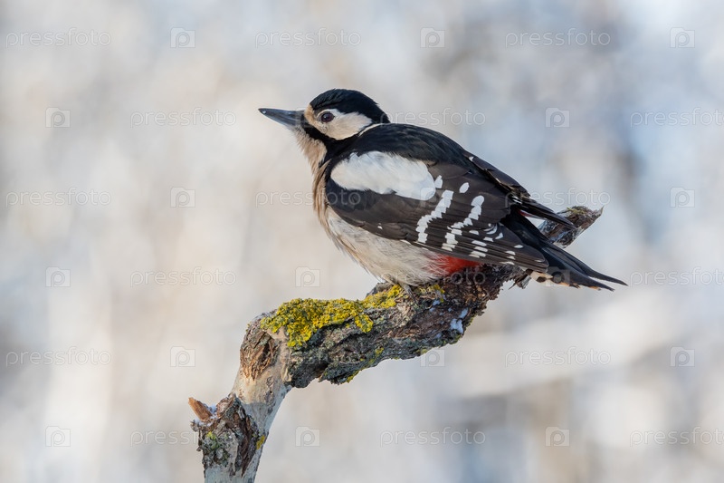 Большой пестрый дятел самка на тополе