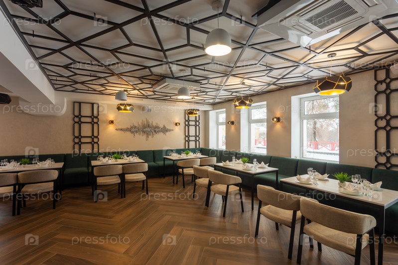 Современный интерьер городского ресторана или кафе с обеденными зонами