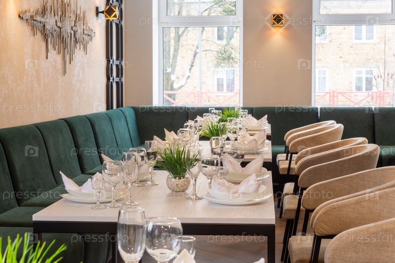 Современный интерьер городского ресторана или кафе с обеденными зонами