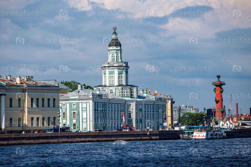 Санкт Петербург, вид на кунст камеру и ростральную колонну