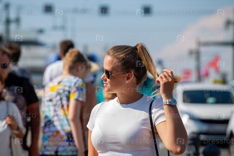 Девушка в Санкт-петербурге на Дворцовом мосту