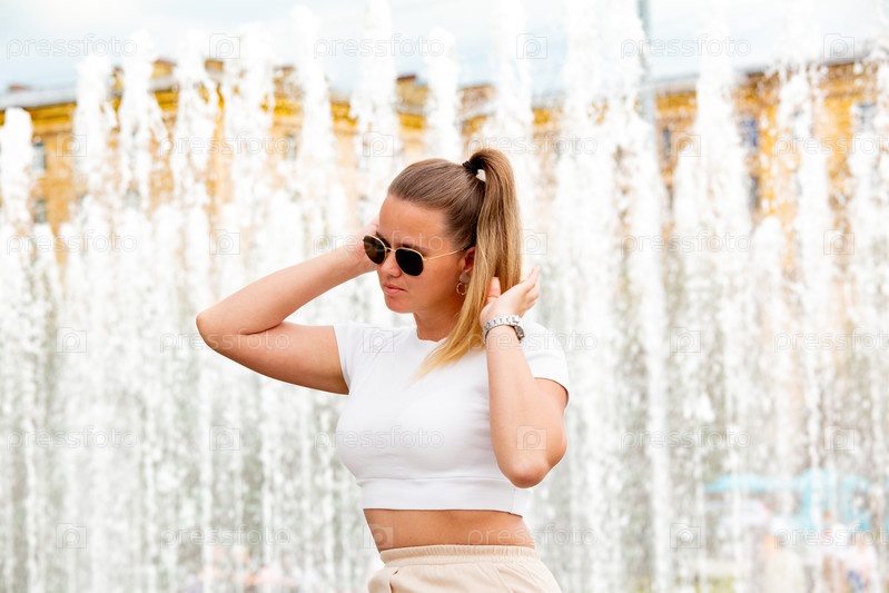 Девушка у фонтанов на Московском проспекте