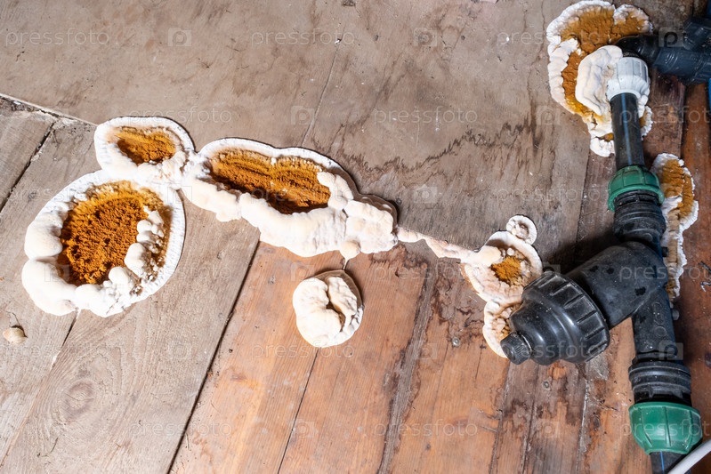 Грибок, поражающий деревянные элементы конструкций, изображение крупным планом