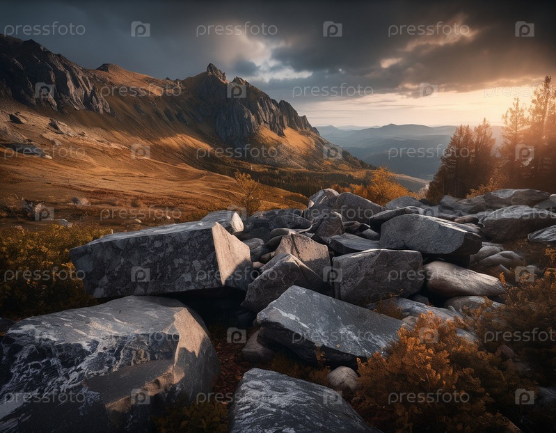 Красивый кинематографический горный пейзаж с черным мрамором и гранитом