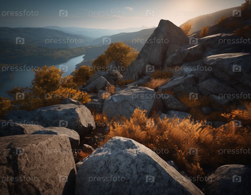 Красивый кинематографический горный пейзаж с черным мрамором и гранитом