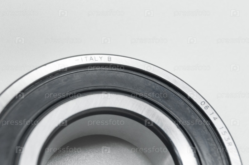 Подшипник закрытого типа для современного оборудования и машин на белом фоне. Итальянский шарикоподшипник с защитными крышками. Селективный фокус