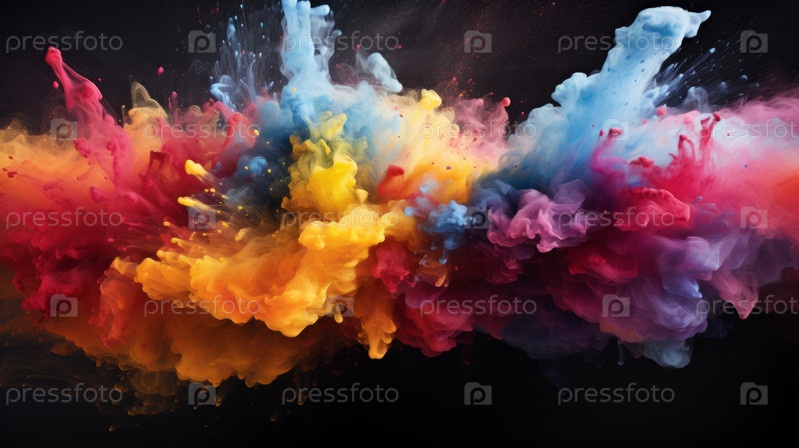 Красочный взрыв порошка на черном фоне. Абстрактные пастельные цвета частиц пыли всплеск