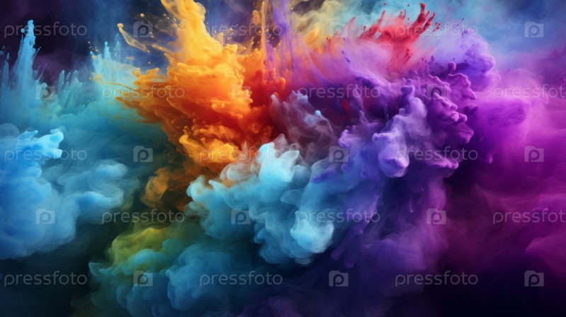 Красочный взрыв порошка на черном фоне. Абстрактные пастельные цвета частиц пыли всплеск