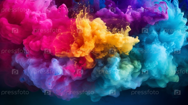 Красочный взрыв порошка на черном фоне. Абстрактные брызги частиц пыли пастельного цвета