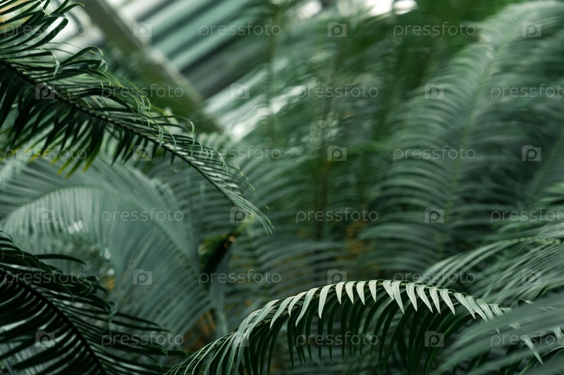 Частично размытый естественный фон с листьями саговника на переднем плане