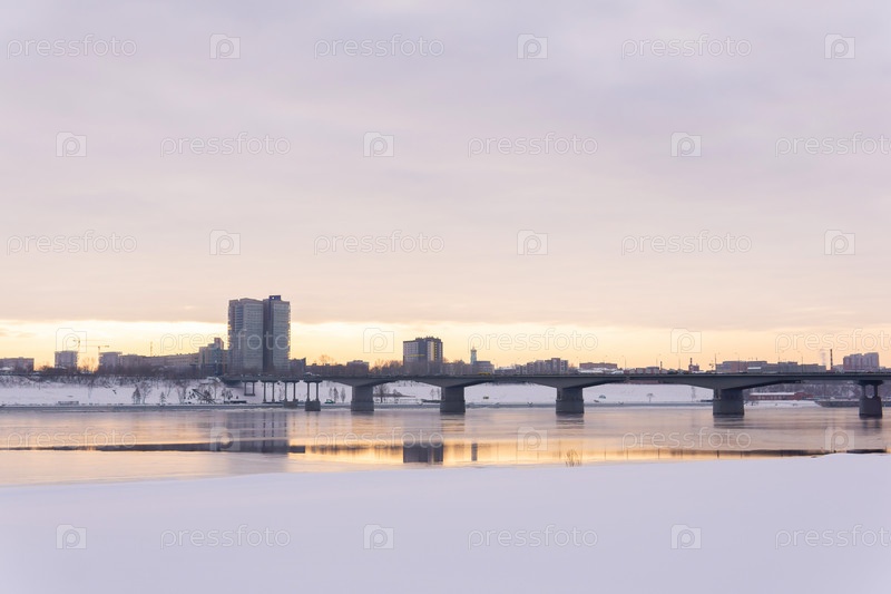 Вид на город Пермь, Россия, с правого берега реки Камы зимой