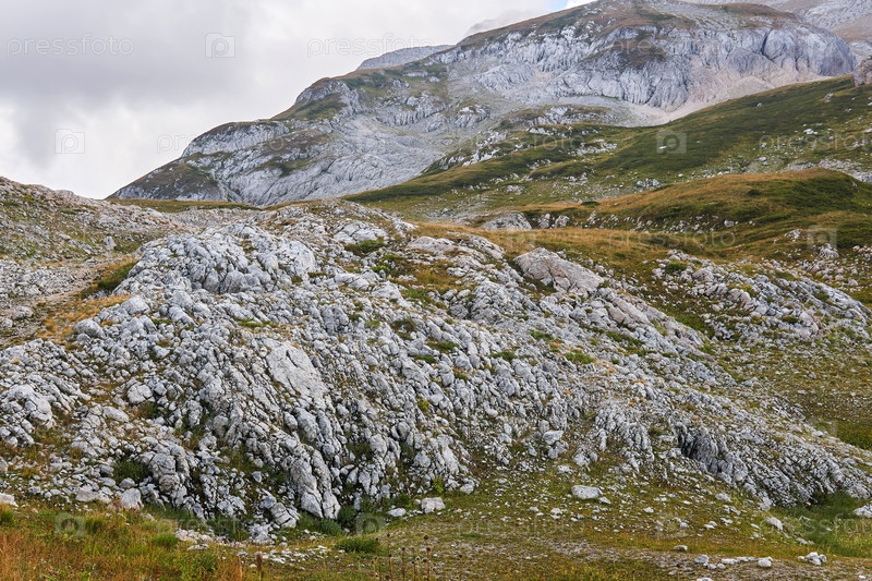 Красивый скалистый карстовый горный пейзаж с известняковым покрытием (структура выветривания)