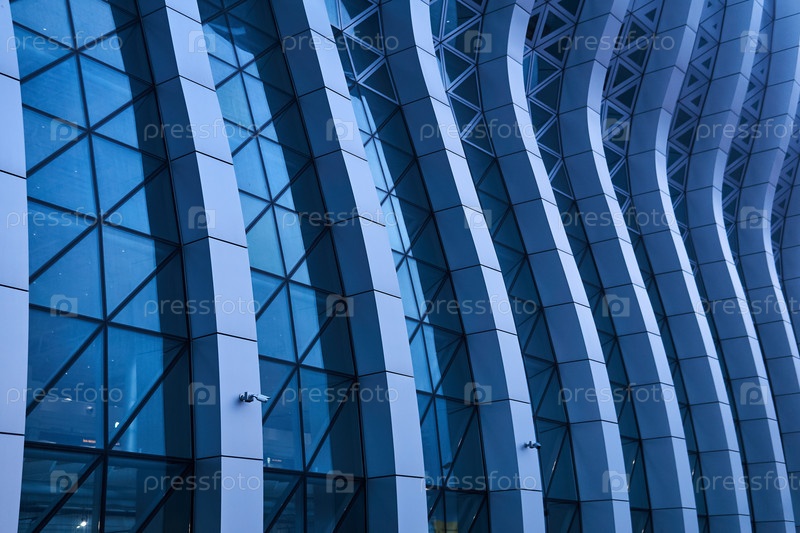 Часть замысловато изогнутого фасада современного здания
