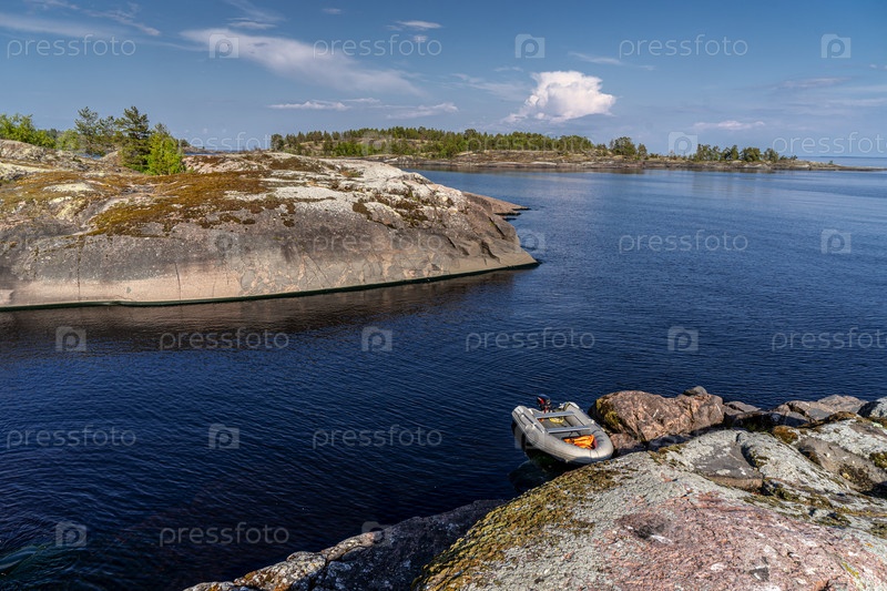 Лодка у скалистых островов на Ладоге