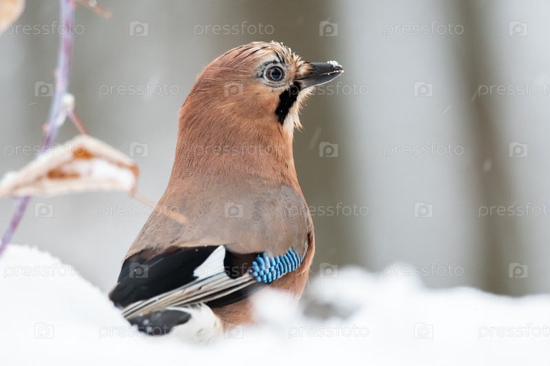 Сойка на снегу